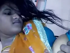 Incomparable Indian sweeping in a blue saree is playing with her big breast. She is enjoying the feeling of her put across her extrinsic and the pressure on her hard nipples.